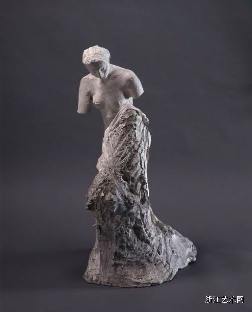 《组合:站在花瓶中的裸体女子》,石膏和陶瓷,30.7x15.8x22.6cm