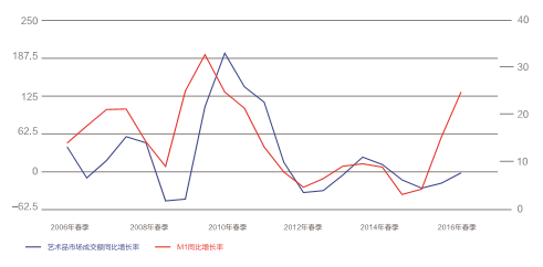 图 A-1 2016 年上半年货币供应量激增,艺术品市场轻微下滑