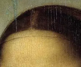 仔细地观察这幅画的此一部分,你就会看到有一层黑色的纱罩在蒙娜丽莎的头上,落在她的脸颊边,或许这是在暗示她的贞淑。她发际处的头发与眉毛也许出于当时的时尚而被拔掉了。