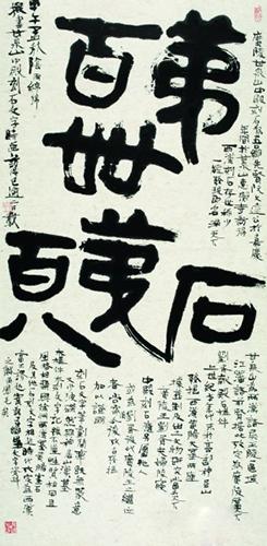 细读展览,记者发现展出作品几乎囊括所有书 体,经文以及题跋解读特色鲜明,充满书写趣味,只用于扬州的“邗”字,被顾风以大篆形式呈现;甘泉山汉墓出土的“广陵王玺”印,以汉篆形式展现;李白《黄 鹤楼送孟浩然之广陵》的七绝诗,则用行草方式再现……顾风用书法叙事,从吴楚文化讲述到两汉文化,从六朝、隋、唐继而讲述到康乾乃至民国,用不同书体与不 同节奏来配合不同的历史细节与文化典故,120件作品,扬州两千多年的历史文化之境跃然纸上。