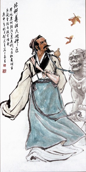 直到“文革”后,情势终于逐渐好转,他早年浪漫的激情和郁勃的创造力再次焕发。晚期所作人物画较少,多为设色的古装形象,手法中的西洋痕迹已剔除很多。彭先生1980年画的《华佗像》仅一米长,渲染略嫌拘泥,然勾写从容流利,两片衬景的枫叶,枯润相生,笔致灵逸。1987年的《钟馗像》结构虽偏紧实,笔线本身却遒畅流转,精熟自如。1991年的一坐一立两幅达摩像,头部形态与《流离图》类似,点线雄厚充沛,挥运愈加淋漓痛快。彭先生后期主攻画虎,他的创造力在那个领域相对更自由地施展,而笔墨是相通的,上述达摩像的笔墨,或许正得益于他画虎锤炼出的磅礴大气的用笔。彭友善也画山水、花鸟,总体境界不及其人物与虎画,但1982年在杭州与卢坤峰合作时画的那只大苍鹰,笔墨的雄阔气象一点不在他的虎画精品之下。