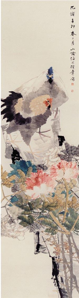 毫无疑问,这些不同构图、不同组合、不同题词的“鸡画”,是被人为地过度解读。正是这种千篇一律的解读,恰好反映出人们对吉祥的期盼和普遍的审美倾向,是文人绘画与大众文化相融合的象征。作为吉祥文化的象征,“鸡画”既受到大众的追捧,更受到文人墨客的激赏,从宋、明、清职业画家如李迪、吕纪、任伯年到明清文人画家沈周、程嘉燧、李鱓等,甚至到近现代的陈师曾、齐白石、徐悲鸿、石鲁、陈大羽等,都创作过无数的“鸡画”。作为花鸟画的重要组成部分,“鸡画”的功能性已经超越其艺术价值,是世俗文化在绘画中的呈现。如果从这个角度来审视“鸡画”,也就不难理解其在画史中的比重了。