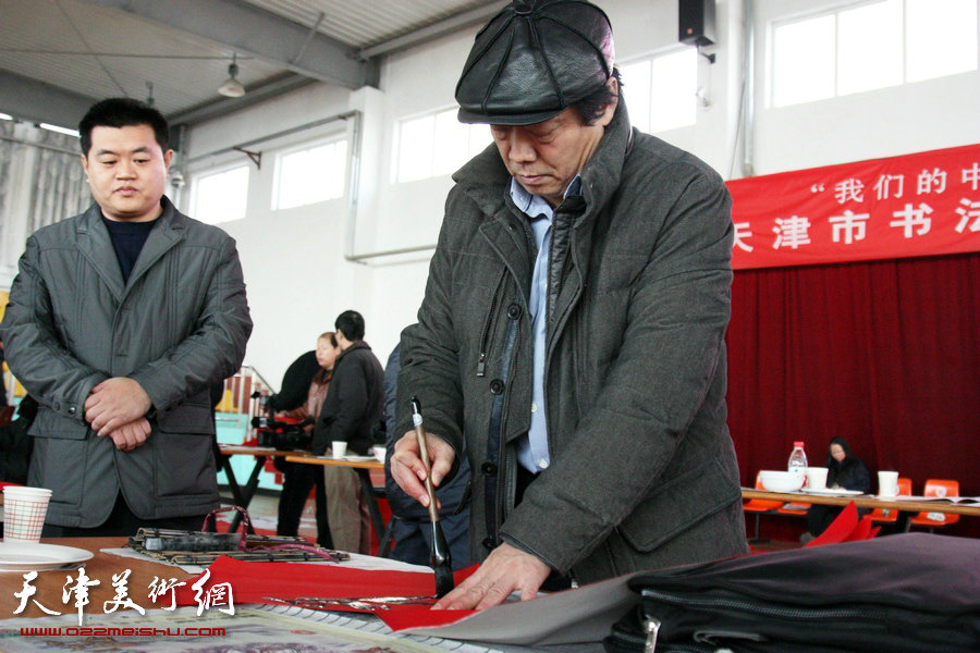 天津市书法家深入武清区送“福”迎春,图为张建会。