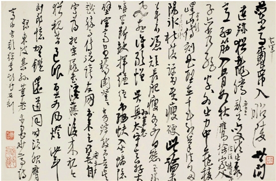 高二适书法名重一时。章士钊曾以“天下一高吾许汝”誉之。其书学以章草筑基,参王羲之、张旭、唐太宗、孙过庭、杨凝式、宋克诸家笔意,糅合大草、今草而自成一格,笔力矫健,草法精绝。高二适耗时10年,广搜《急就章》注校考异本,排比审核,矫前人之误,著就《新定<急就章>及考证》一书,存亡继绝,匡正前贤讹误,填补了我国书史空白。高二适最为世人熟知的亦让其名声大噪的乃是1965年与郭沫若的兰亭真伪论辨,其不顾“世人矢的,被人唾嗓”,独持己见,撰《兰亭序真伪驳议》一文,立论精严,援据充分,确证《兰亭序》为真非伪。