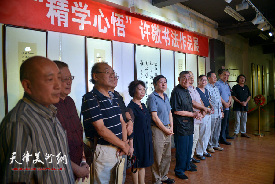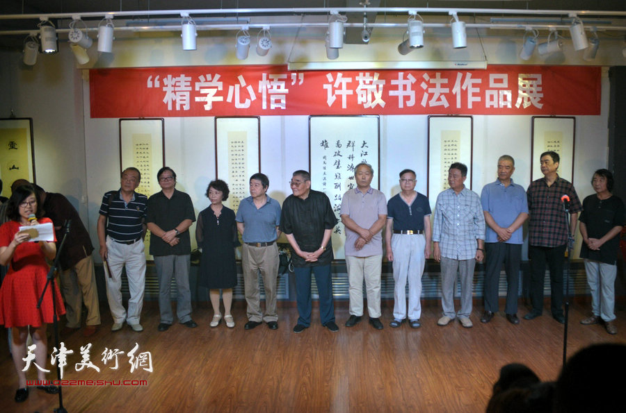 “精学心悟”许敬书法作品展在天津鸿德艺术馆开展,图为开幕式现场。