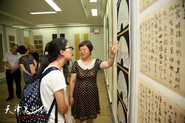 蓟县书协副主席杨连山、《书法报》蔡建花在书展现场。