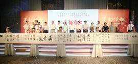 天津美术网讯 为纪念中国共产党成立95周年、中国工农红军长征胜利80周年,昨天(6月29日),由天津市教科文卫体事业发展促进会主办的“墨韵颂歌”——书法作品展在天津唐拉雅秀大酒店开幕。天津市政协副主席刘长喜,天津警备区原司令员滑兵来,市政协常委、市教科文卫体事业发展促进会副会长兼秘书长于树香,天津市政协副秘书长沈奎林,中国工程院院士、市政协常委、市政协科教委员会主任、市教科文卫体事业发展促进会副会长郝希山,河西区文化局局长高文红,中国书法家协会副主席、天津市文联副主席、天津市书法家协会常务副主席张建会,天津市书法家协会顾问孙宝发、王全聚,天津市书法家协会副主席况瑞峰、李泽润、李锋、霍然、邵佩英,海航天津大集发展有限公司副董事长兼总裁赖兴建等出席了书法展开幕式。开幕式由天津市文联原党组书记、天津市教科文卫体事业发展促进会副秘书长、文化委员会主任孙福海主持。