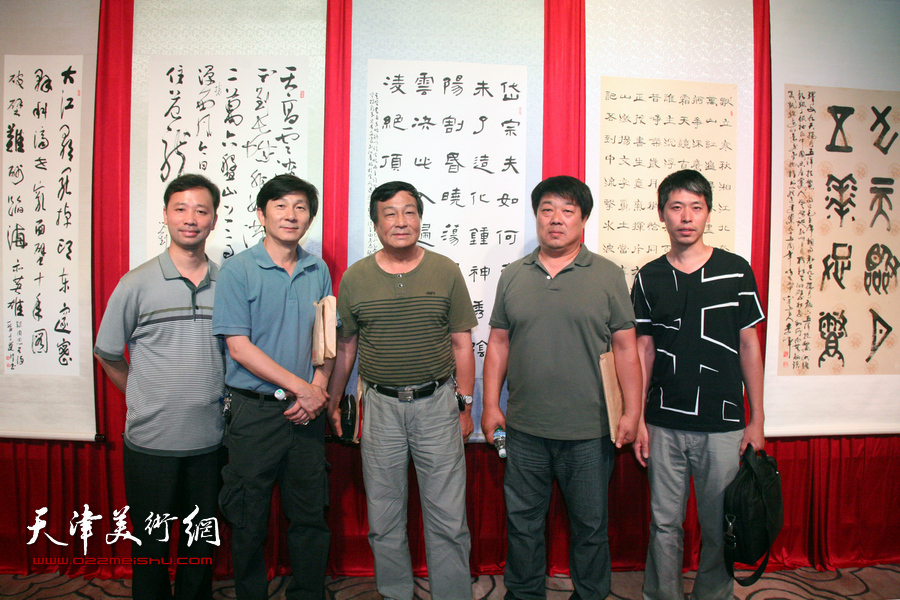左起:沈宪民、董士林、季家松、张晓强、姜钧杰在书法展现场。