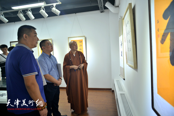 智如法师观看展览展出的作品。