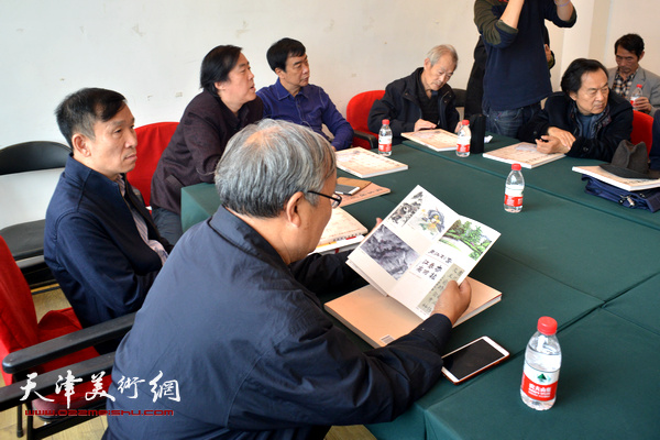 喻建十、刘运峰、解新毅、邓英彪等在齐治源先生书法篆刻艺术研讨会现场。