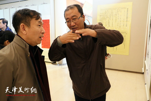 李泽润、崔寒柏在展览现场交流。