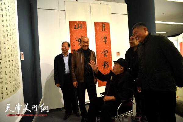 孙伯翔与周志高、张建会等津沪部分参展书法家们在展览现场。