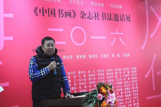 张世刚先生代表参展书家讲话时谈到,“《中国书画》是一本有‘贵族’气质的高大上的杂志,在行业内的影响力带动了他们在书画活动方面的成果,而且具有相当高的水准。他们的努力,也给书法界带来一股活力,带动书法家更积极地研究创作,更积极地参与交流活动。”