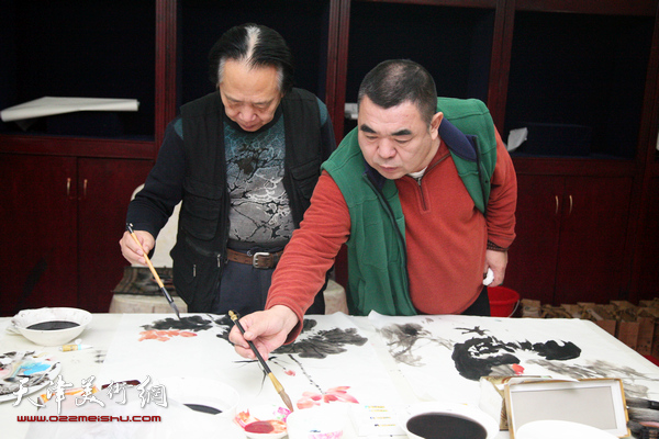 马俊卿、孙玉河在现场创作。