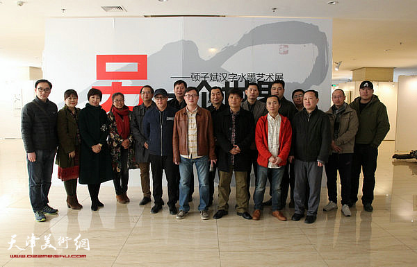 陈元、要彬、曹娟、韩石在顿子斌汉字水墨艺术展现场。