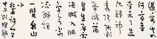 其二,灿铭的行书、草书、行草书皆自成一格。其中共同的可贵之处,在于流动中善于淹留。流而不浮滑,停而不凝滞。留与停皆神思从容、节奏浑然,意气贯注。因而既不一路滑过,亦非纠缠不休。仅此也可见他对行书、草书创作见解的一斑。