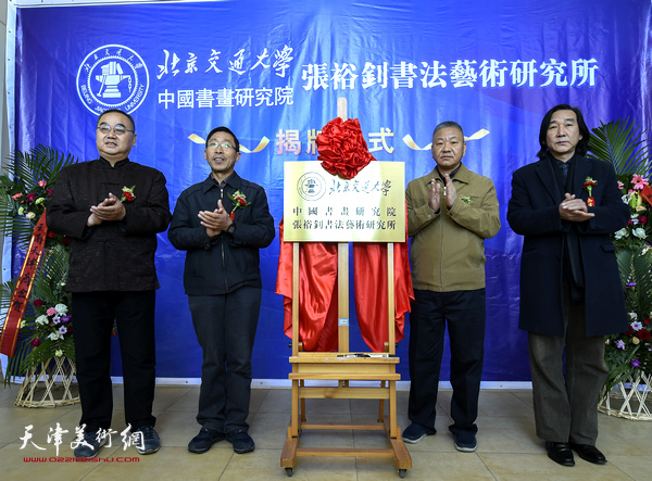 张裕钊书法艺术研究所近日在北京挂牌成立。图为揭牌嘉宾。