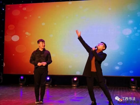 一曲由江西省歌舞剧院李琼瑶演唱的《不忘初心》拉开了整场演出的序幕,也表达出了江西书法培训中心所有师生的心声,不忘初心、牢记使命,让中国书法这门古老的艺术焕发出时代魅力和风采。紧接着由江西师范大学和江西科技师范大学的师生们带来的傣族舞蹈赞哈、歌曲《欢天喜地》、《水墨中国》、《今宵如此美丽》、古筝《渔舟唱晚》等视听盛宴,还有省书协培训中心景德镇基础班肖建虎学员带来的洞箫独奏、贵溪高研班裴志青学员带来的歌曲我心永恒、南昌篆刻班学员欧阳华带来的葫芦丝演奏映山红让我们领略了中心学员风采,陕北青年歌手江波、贺艳、杨晓东等带来的陕北民歌《父亲的草原母亲的河》、《高楼万丈平地起》,南昌采茶戏剧团何明辉、付桃带来的传统采茶小戏《秧麦》等极具地方特色的歌曲,让所有人感受到南北艺术的魅力,由著名青年相声演员、中国曲艺牡丹奖获得者孙铭泽带来的快板书《高歌十九大》让表彰大会推向一个高潮。