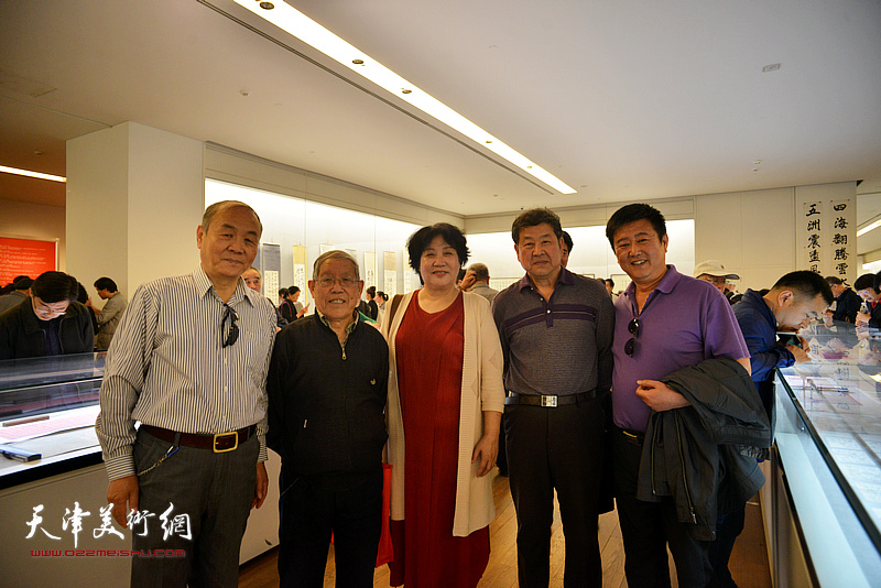 左起:姜钧杰、邓英彪、王学书、甄光俊、高文军在展览现场。