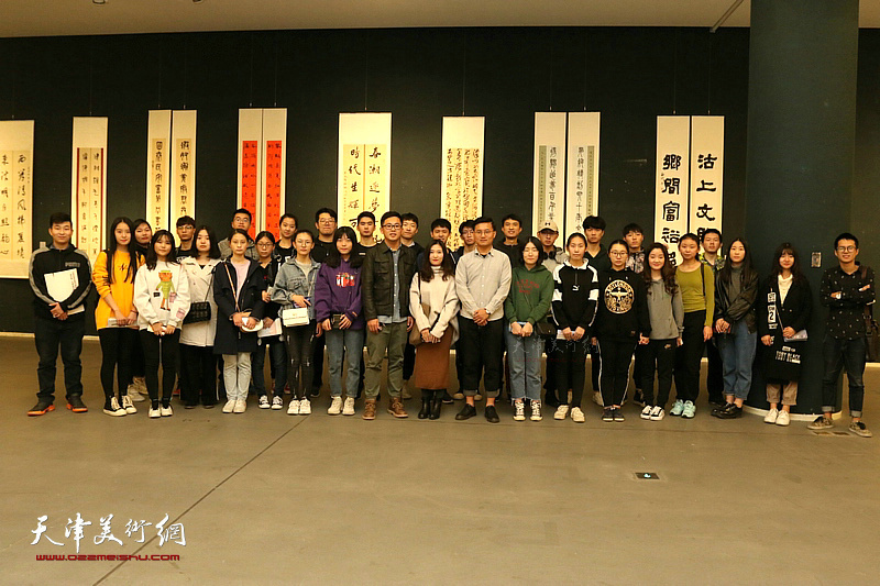 张同明与学生们在展览现场。