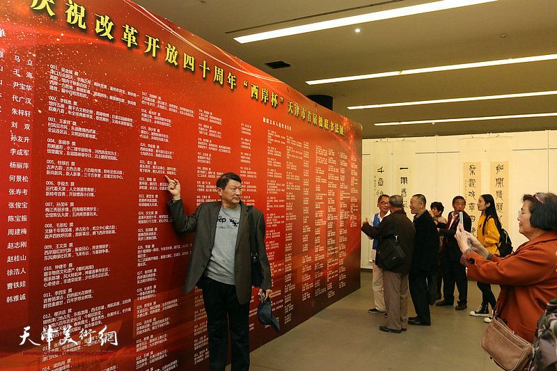 天津市人大原副主任李润兰,天津市文联党组书记、常务副主席万镜明,天津市河西区委书记李学义,河西区政协主席李耀进,河西区委常委、宣传部长杨志庆,河西区政协副主席刘惠庆,河西区政协秘书长杨玉芬,中国书法家协会副主席、天津市文联副主席、天津市书法家协会常务副主席张建会,天津市书协副主席李锋、李泽润、况瑞峰、喻建十、霍然、邵佩英、任长文,天津市楹联学会会长陈伟明,以及天津市各区书协负责人、特邀、入展、入选作者等出席了画展开幕活动。画展开幕仪式由天津市文联党组成员、秘书长商移山主持。