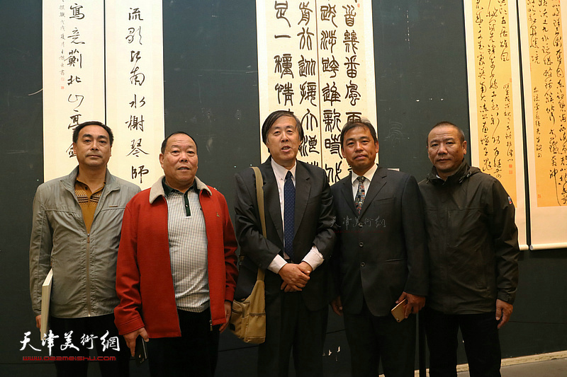 左起:孙建忠、任云程、王树秋、陈子满、薛卫林在展览开幕活动现场。