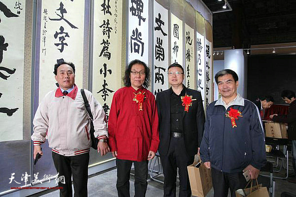 左起:天涯艺术网总编于健,天津市书法家协会原主席唐云来,书法家陈栋琨,三品美术馆常务馆长倪加福。