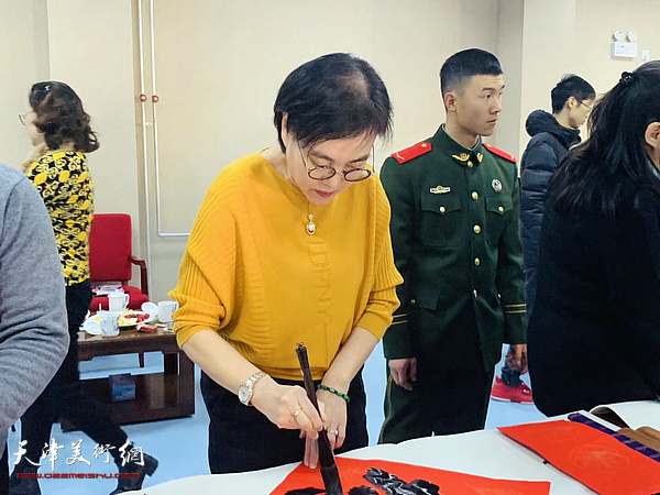 1月23日下午,由中国书法家协会副主席、天津市文联副主席、天津市书协主席张建会带队,副主席任长文、邵佩英、赵桂中,驻会理事薛卫林,理事朱懿、华露香,中国书协会员华刚年、姜钧杰,天津书协会员马培鉴、崔希鹏为队员的“红色文艺轻骑兵”小分队来到市政协营口道施工工地,为工程建设者、武警官兵和附近社区居民现场书写“福”字和春联,受到热烈欢迎。