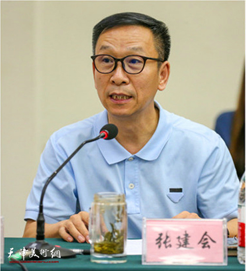 张建会在天津市文艺界学习贯彻习近平总书记致中国文联中国作协成立70周年的贺信座谈会上发言。