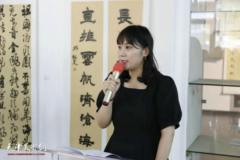 随后,参展作者代表王姿颖同学发言。她说,作为书法专业的学生,应不断扎实专业本领,积极创作。欲正其书者,先正其笔;欲正其笔者、先正其心,青年学子任重而道远——为坚守汉字文化的本源价值,为传承我国书法传统艺术不忘初心、奋力前行,提升文化自信。