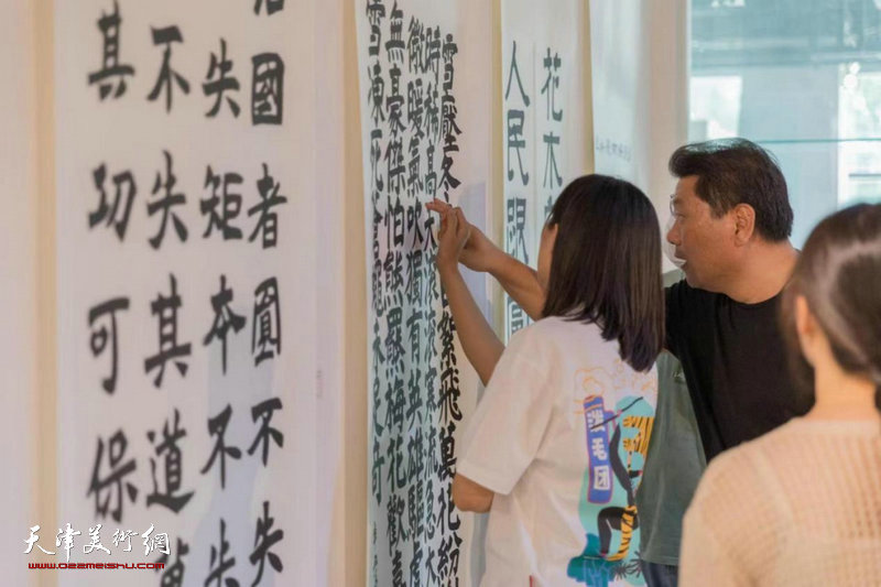 孙杰、董洪霞、周午生、吕铁元等在展览现场观看作品。