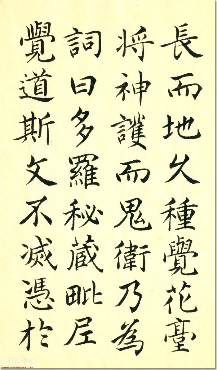 宋代以来形成了一种主流观念,笼罩书坛至今,认为学书宜先楷而后行草,这并不符合书法发展史实。书家也受这一观念支配。但与一般书家不同的是,他主张写楷书是书家一辈子的事,故其晚年又返本归源,重向欧书讨消息。所作楷书以温润峭劲、浑穆高简的欧书为情性,以遒丽宽博的的隋书《龙藏寺》为形质,将二者有机地融为一体,孕育出自家面目:结体疏密有致,点画秀逸圆润,秀而不媚、遒而不浊,朴实酣畅、自然。唐书尚法,晋书尚韵。筑基于最严谨的楷法,沉浸于二王行草,取二者之长,使其楷行草出入于“法”“韵”之间。同时熔铸颜书,与上溯汉魏和三代,其书气息高古、浑穆,圆融。可谓渊默而雷动,宁静中别具一种动人心魂的力量。这与书家的淡薄名利密切相关。书家为人纯真、表里如一,素为人们称道。