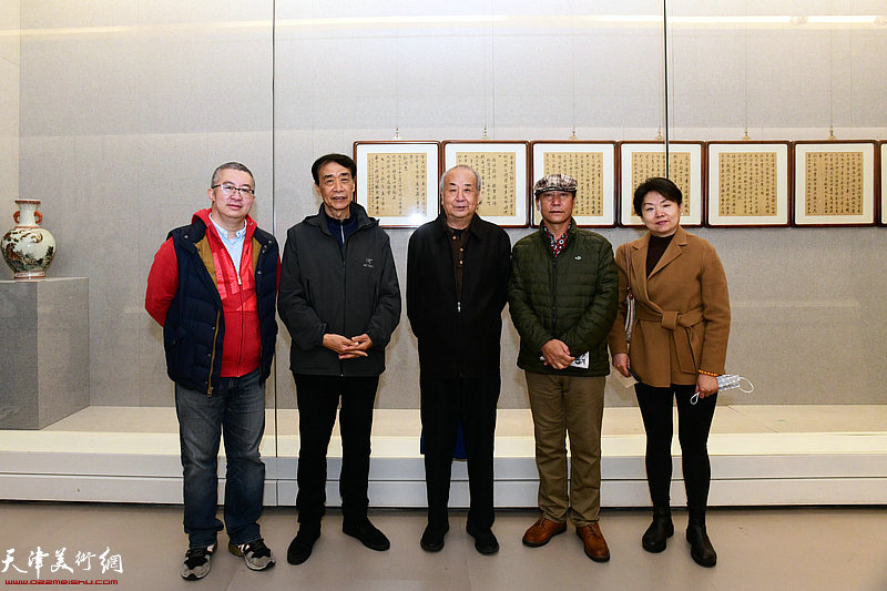 2022年11月10日王振德先生与姜维群、张福义、齐珏、王峻立在孟宪维书画展现场。