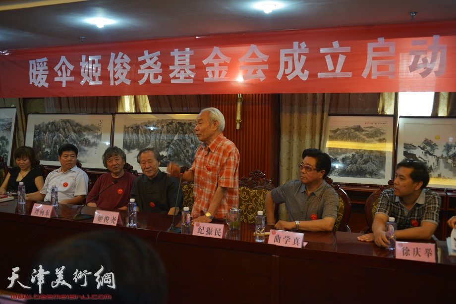 暖伞姬俊尧基金会在河北省东光县成立,图为纪振民致词。