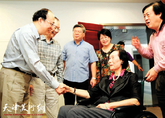 9月27日,徐悲鸿夫人廖静文(右二)、徐悲鸿长孙徐小阳(右一),毛泽东主席机要秘书张玉凤等一行莅临浙江日报报业集团,参观美术报社并进行座谈交流。