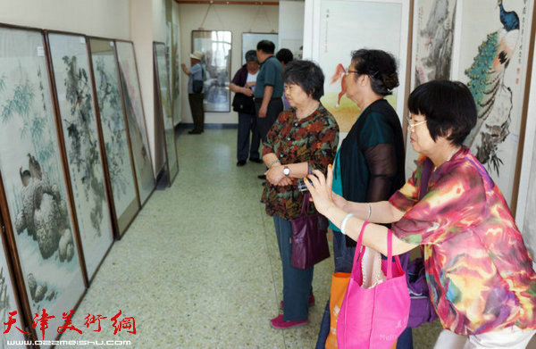 天津美术网讯 6月7日上午10点,位于河西区文化馆6楼的西岸艺术中心展厅人头攒动,热闹非凡。《画讯》俱乐部第九届会员展在这里隆重开幕。140余幅书画作品在这里集结,吸引了大批俱乐部会员和书画爱好者前来观看。王金厚、韩富华、吕宝珠、王义常、王佩翔、王俊英、刘长久、王惠民、李根友、孙富泉等天津百中国画院的画家们以及皇甫秉钧、郑世著、董云华、邢淑贞、董学文、徐希嵋、房师武、赵孟君、张文琴、马玉萍、吕爱茹、谢天强、李建新、边中一、李维娜、陈福云、范宁、杨长曙、卜庆蔚、孟庆芬、訾春花等书画家也一起参加了开幕式。开幕式上,《画讯》艺术指导徐庆举主持了开幕式。百中国画院院长、著名人物画家王金厚和天津河西区美协秘书长、著名油画家郑爱民先后讲话,他们对《画讯》俱乐部的成长和会员们的不断进步给予高度评价,并祝贺画展成功举行。徐庆举代表俱乐部也做了简短发言,他为广大会员们坚持学习和创作,在一年一届的会员作品展上不断取得进步感到高兴,也为此次拿出作品一起展览,并参加活动为会员进行作品点评的百中国画院的书画家表示感谢。他说,《画讯》俱乐部能走到今天,与书画家和会员们的长期以来的支持是分不开的。他的讲话引起共鸣,全场响起热烈的掌声。