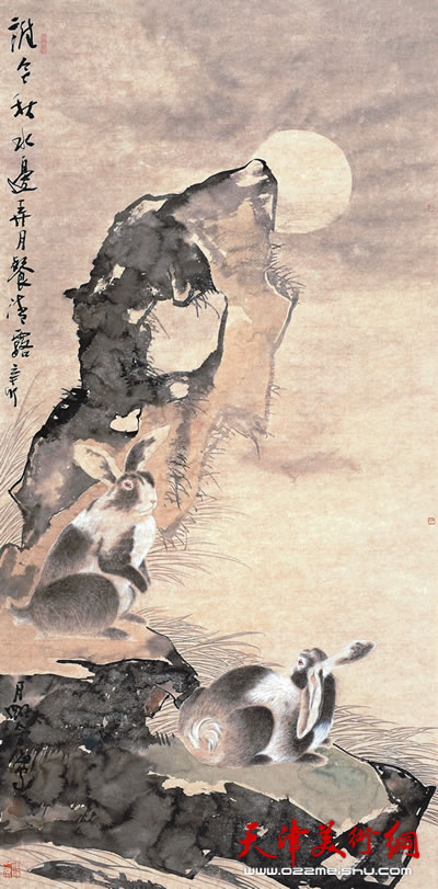 尹沧海的这样一种艺术创作状态首先可以称为是“游于艺”,即在自然的、放松的、快乐的状态下进行创作,这是一种对于熟能技巧掌握后庖丁解牛般自如运用的自由游。尹沧海承续了先贤传统的艺术风格和技巧,以皖派画风为内在资源,又下苦功夫全面钻研了中国写意绘画传统,尤其在笔墨上做过许多磨练,特别是对于八大笔墨的清逸横生,以象征手法抒写心意情有独钟。他的山水画在气势上讲究简朴、舒坦,在笔意上追求酣畅、雅逸,构图严谨,传统技法成功地转向现代,以笔墨抒情达意。这是建立在深厚传统笔墨功力根基之上特有的绘画语言和表现形式,在运笔的张弛中更有画家心灵的诉求、情感的起伏,呈现出心境的自由和感情放松的状态,这可见他的作品《月照参差影》、《月出惊山鸟》、《心闲便是神仙》以及长卷《意在青藤、白阳之间》中寄情的物象。
