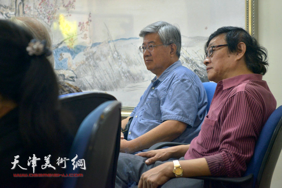 梁崎先生书画艺术研讨会现场,图为琚俊雄、曹柏崑。