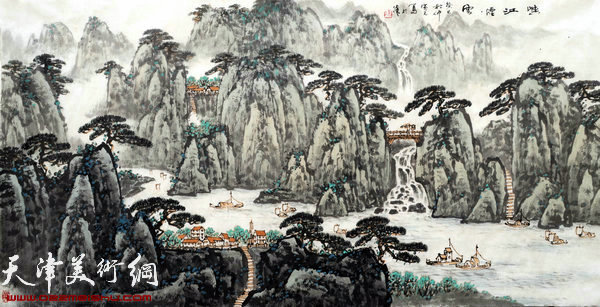 陶老师的山水画多以小青绿法表现,青绿山水装饰感强,色彩浓艳,画青绿往往高手典雅,拙者趋俗。脱俗首先在于画家的修为,陶老师富藏书,爱读。早在百花文艺出版社期间天南海北的跑,得山川灵气哺育,见识自然不凡。
