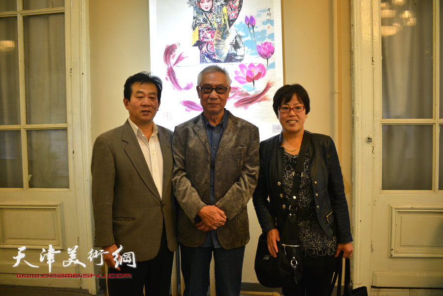 濠上观鱼——中华鱼文画书法绘画展在西洋美术馆开展,图为左起:翟智慧、华非、刘栋。