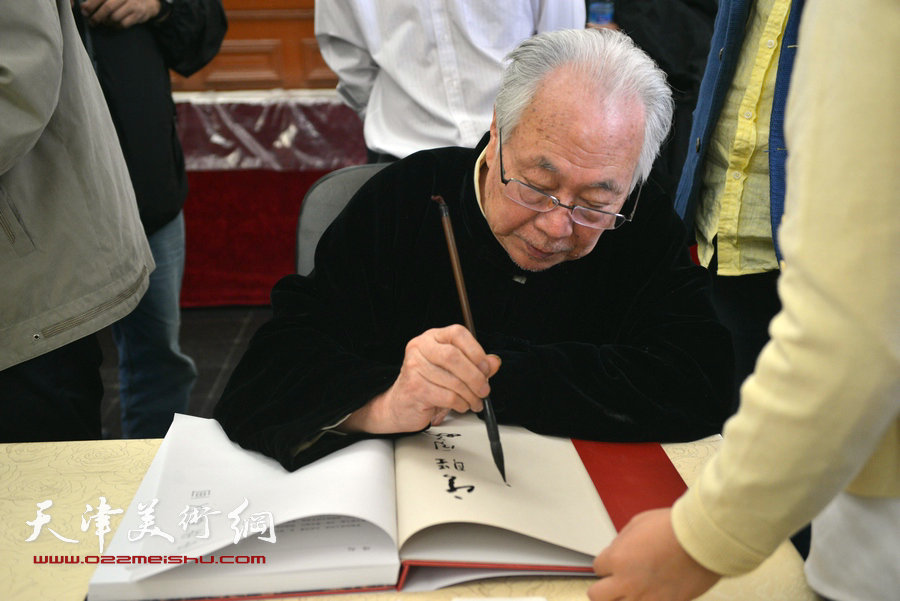 濠上观鱼——中华鱼文画书法绘画展在西洋美术馆开展,图为华非在展览现场为读者签名。