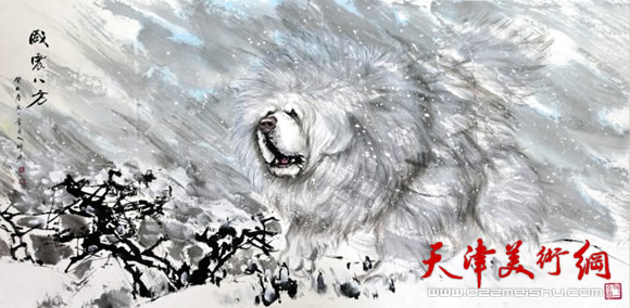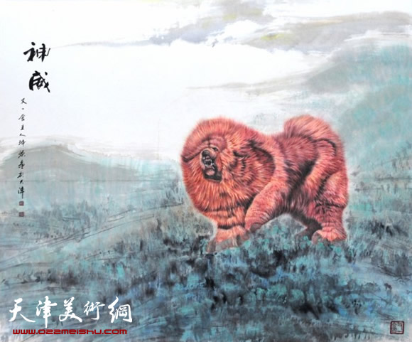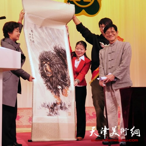 画家珅源向天津市和平区残联赠送作品《独占獒头》