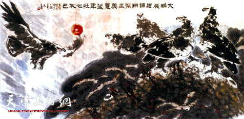 以画鹰闻名的画家李克玉,他笔下的苍鹰或雄踞远瞩,或展翼飞翔,神态各异、威风凛凛。中国著名书画家程十发对李克玉的《鹰击图》大为赞赏,欣然题词:“苍劲恬然,凝重朴实”。在我国,一名优秀的画家在同一题材上,一画就是数十年的,这并不多见。可见李克玉画鹰是有深厚功力为依托的。正是因其常年临池不懈,并将古法融于翰墨丹青之中,才有今日画法独特、造型准确、威猛灵动、笔墨狂放、极其神似的翱翔天空的“李克玉苍鹰”。殊不知,李克玉在画鹰的同时还涉猎山水、花鸟、人物等诸多题材。如果说画鹰给我们带来强烈的视觉冲击,那么山水间花鸟栖鸣则为我们奉上悠然愉悦的艺术享受。