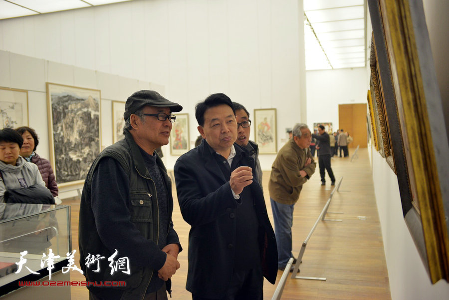 赵鸿友、贾广健、张桂元、范扬等在画展现场。