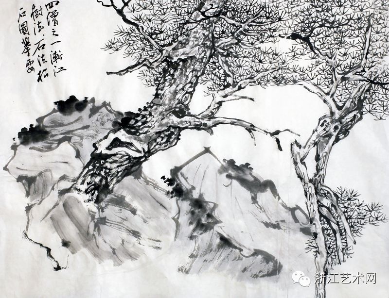 赵晓荣,《渐江树石法示范》,纸本·水墨,35cm×45cm,2012年