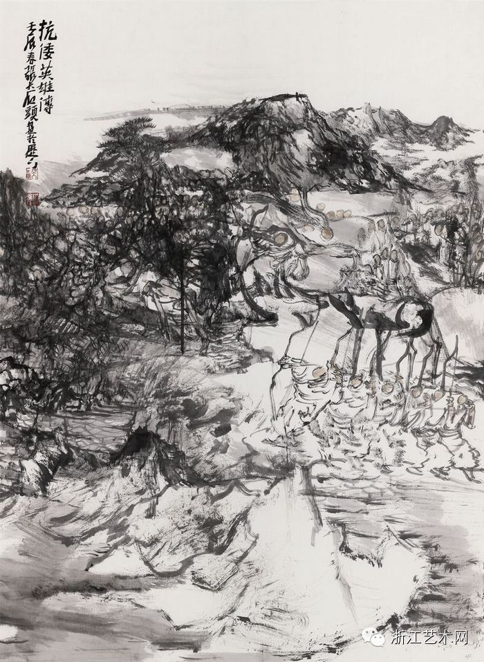 张志民,《抗倭英雄传》,纸本·水墨,178cm×96cm,2012年