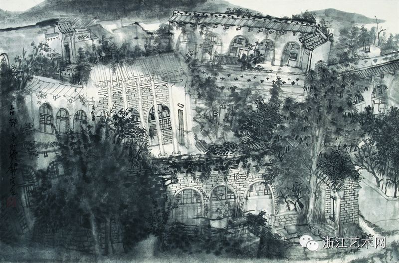 何加林,《碛口古村》,纸本·水墨,45cm×69cm,2012年