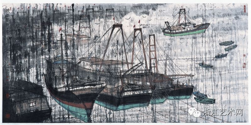 张彦,《哓雨新舫》,纸本·水墨,69cm×138cm,2012年
