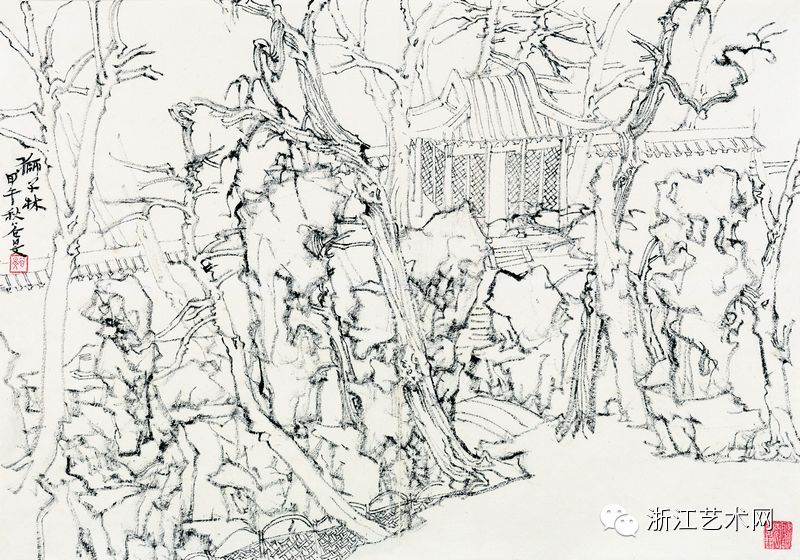 魏云飞,《苏州园林写生之二》,纸本·水墨,34cm×45cm,2013年