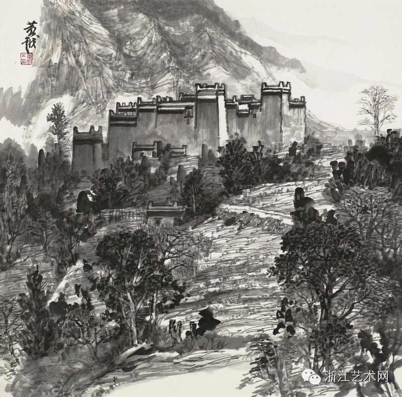 黄越,《丹巴写生》,纸本·水墨,69cm×68cm,2014年